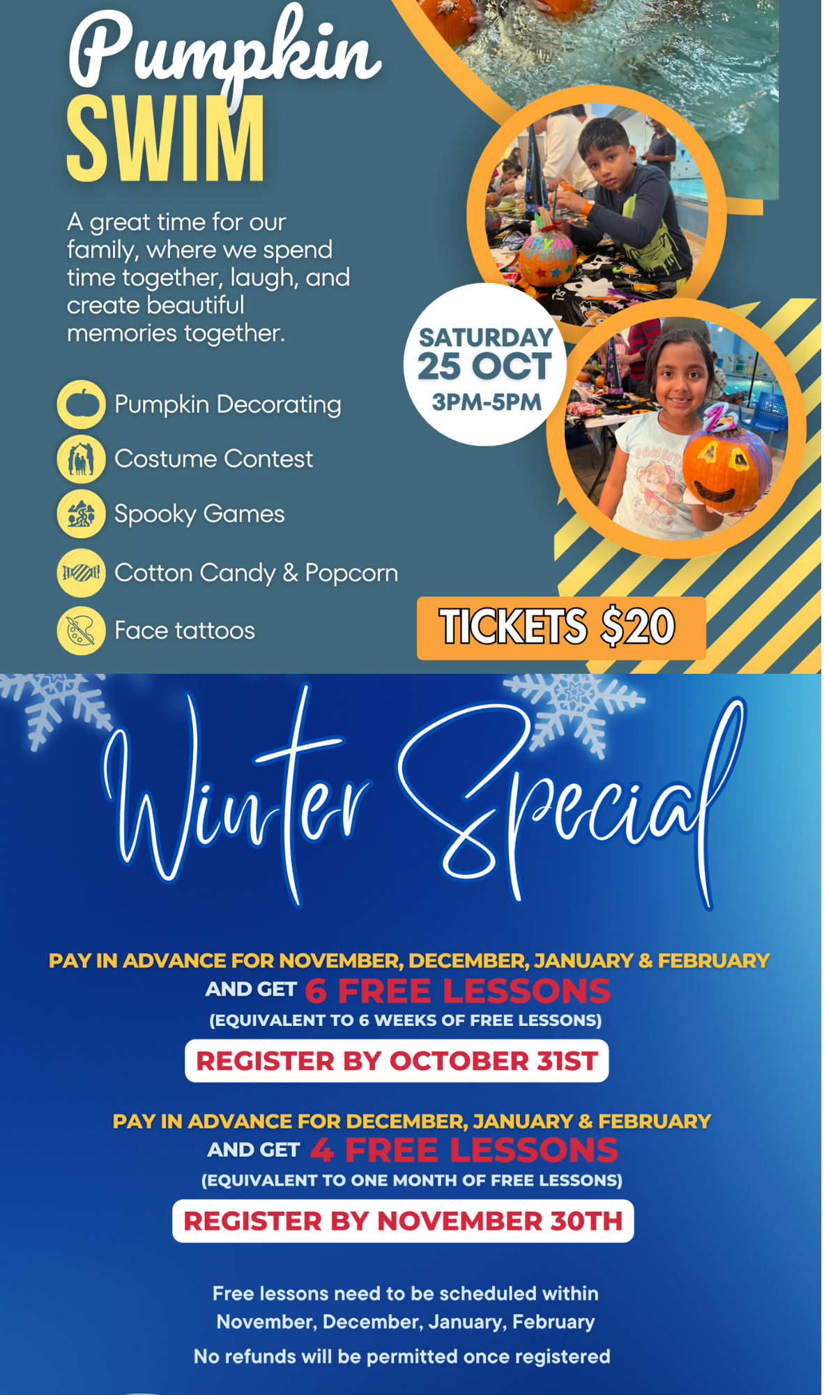 Operating & Swim Lesson Hours: Monday – Friday (2:00 PM – 8:00 PM); and Saturday (8:30 AM – 3:30 PM).
