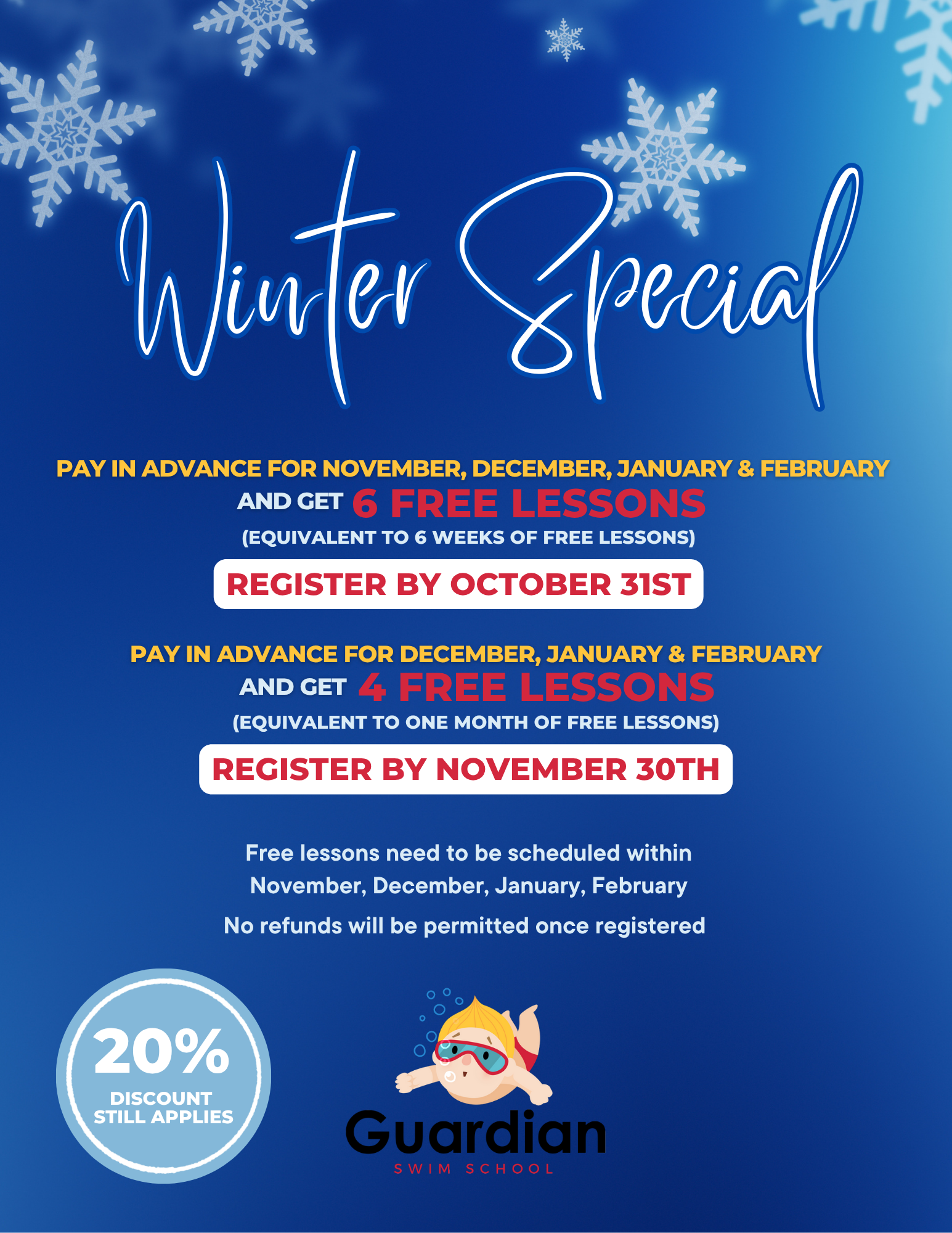 Welcome to Guardian Swim School! Located in the heart of Las Colinas the center offers variety of programs in a state of the art indoor facility. Our pools are maintained to the highest of standards and the warm temperature (87 – 90 degree F) is perfect for our swim programs!